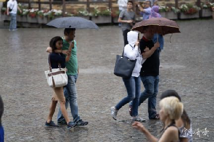這張拍攝于比利時的一個廣場。突然下雨了,看到兩對夫妻走過去,其中一個是丈夫撐傘,一個是妻子撐傘。但是兩對都表現很恩愛。當時覺得挺有意思。