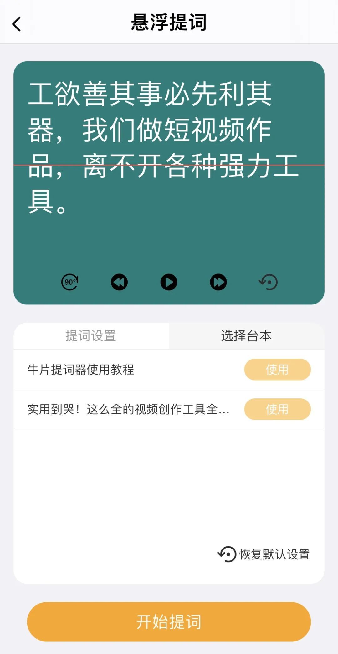 牛片提詞器,可以搭配不同APP,不同設備使用。適合不同平臺的創作者,根據自己的拍攝需求進行個性化設置。有做口播視頻的朋友,可以直接在牛片APP中的創作欄找到這個功能。
