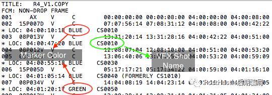 1,假設你已經整理好你的時間線并為所有VFX鏡頭添加了帶有視效鏡頭號的Marker,那么你就可以導出EDL了。記得在輸出前,只選保留Locators(Markers)信息,3600CMX格式,這樣在EDL里就會攜帶上Marker信息,也就是你的特效鏡頭號。它應該長這樣: