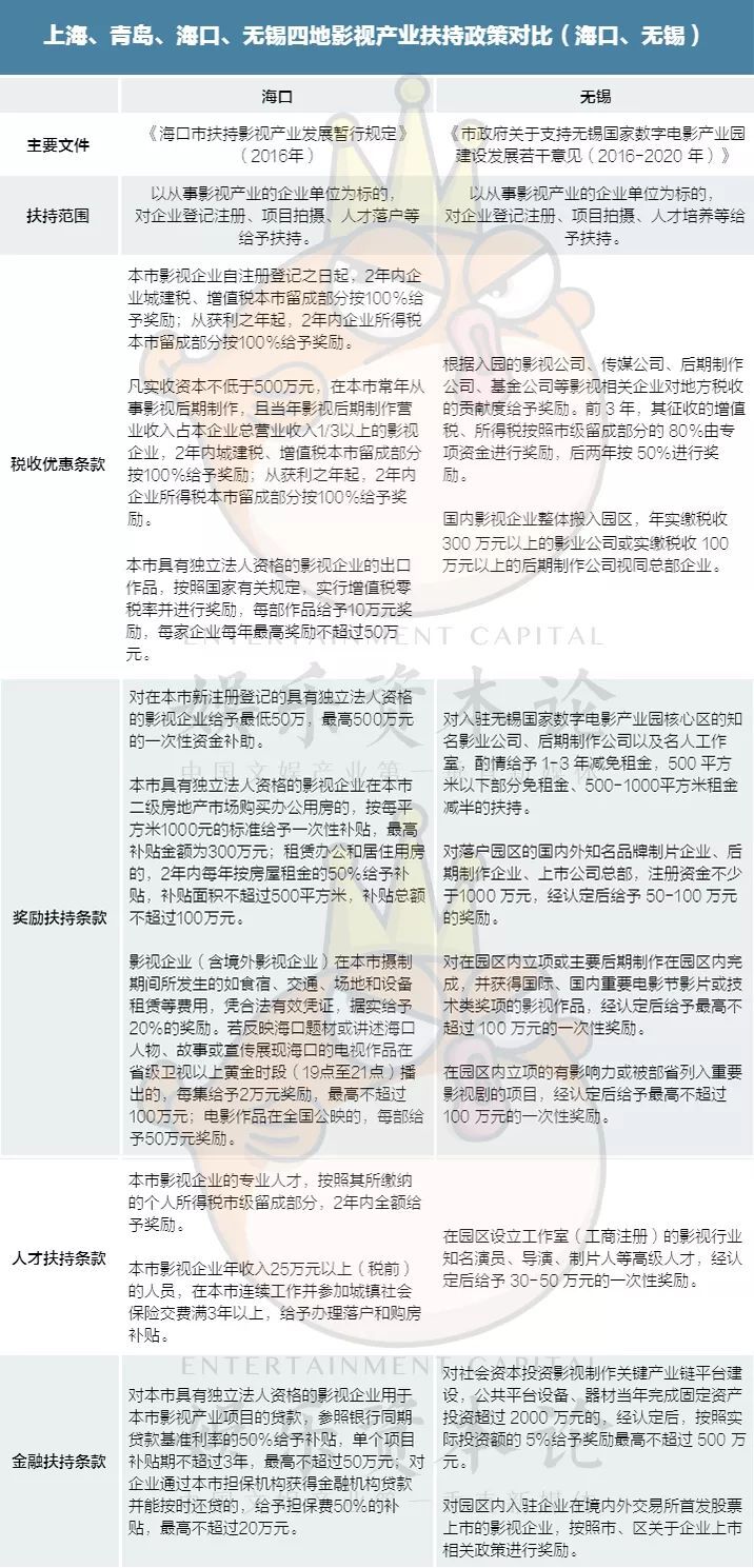 去年,上海重磅發布了“文創50條”,大力鼓勵文創產業的發展。但放眼全國,海口、青島、無錫等各地,也都陸續發布了促進影視文化產業發展的相關政策。