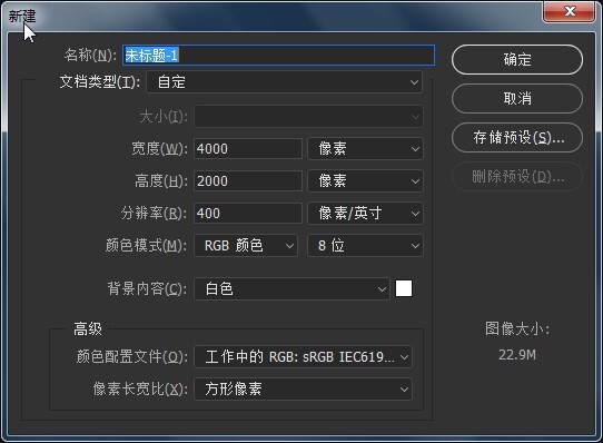 1、 新建一個 PS 操作項目文件,因為是全景圖,所以要求寬高比保持在 2 : 1,建議分辨率在600 DPI以上,這樣可以保持清晰度,但是這樣的分辨率要求相應使用的圖片分辨率也要在600 DPI左右,這樣看起來效果才和諧,清晰度高。(如圖設置)