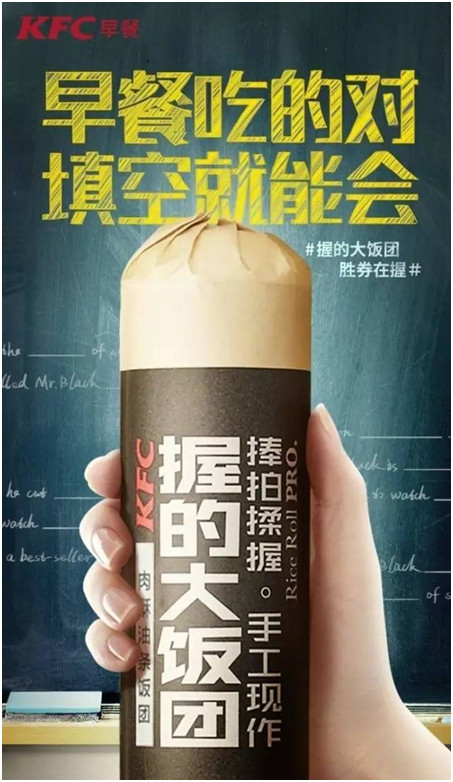 再給大家看一些案例,肯德基的大飯團(tuán)廣告: