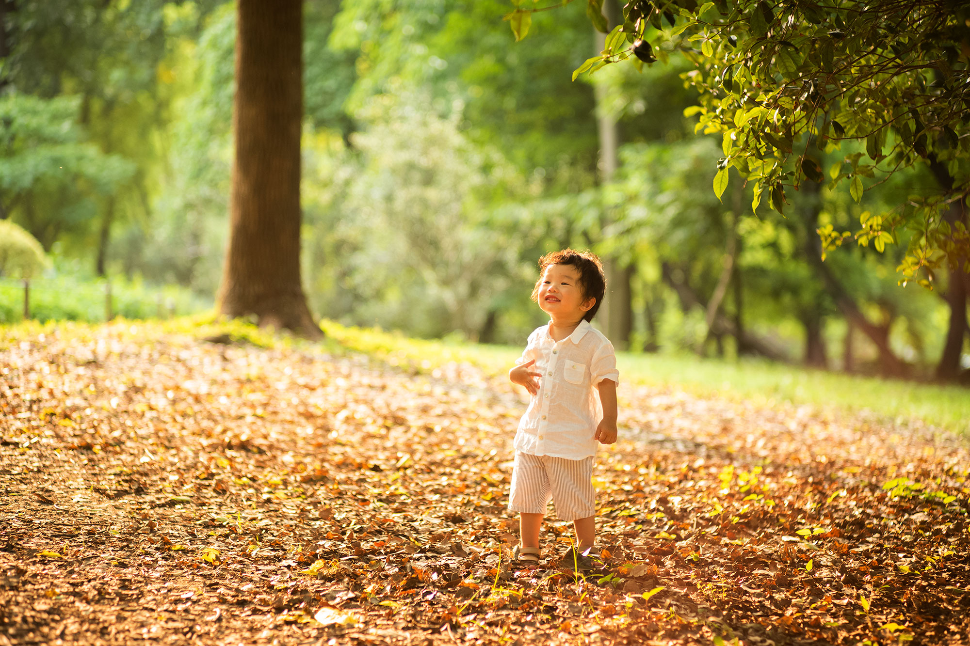 這流光溢彩來自哪里?來自焦外的反光,所以避開大片的水泥地水泥路,在草地、落葉堆這樣的地面拍攝,可以得到閃閃發亮的地面而避免一片地面反光過曝。