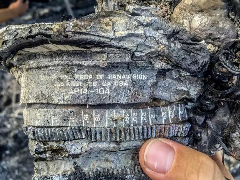 拍攝《逐火者》意外事故中燒毀的Panavision鏡頭