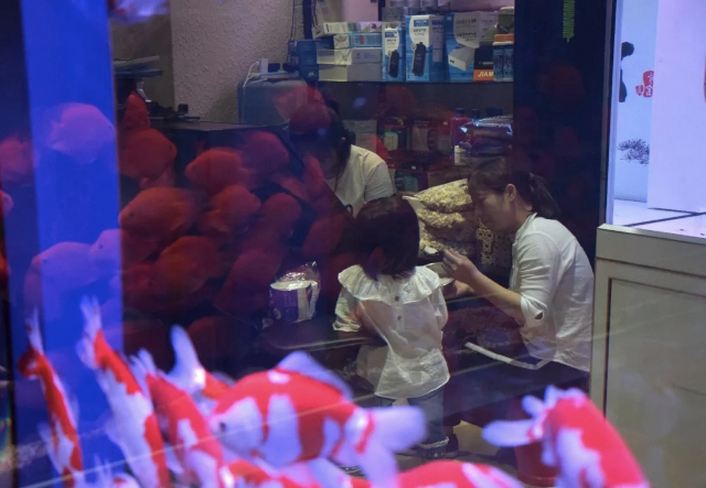 也許是想傳達周圍的環境信息,但魚缸顏色很艷麗,也遮住了人臉。