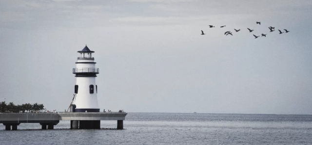 畫面比較干凈,作為主體的燈塔突出,右上角還有飛鳥做點綴。