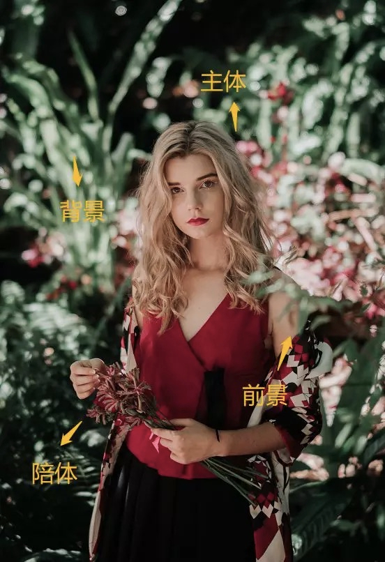了解完取景的基礎后,從組成要素分析,我們可以把照片分為主體、前景、陪體和背景這四大部分。