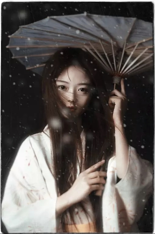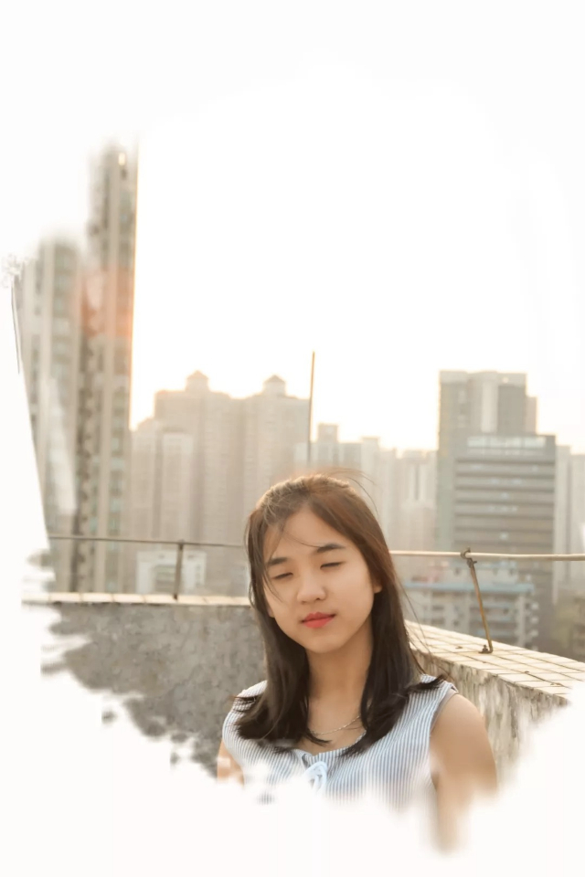 照片有花心思,用了蒙版做暈染效果,但是妹子后面有根鐵絲很搶眼。。