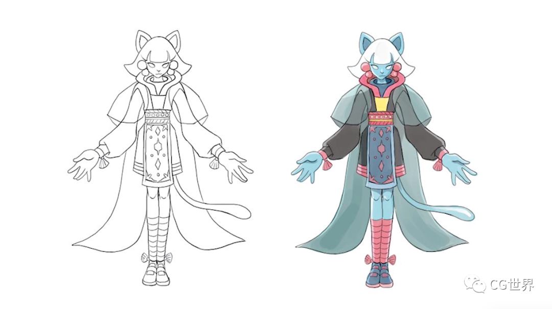 Cashmere Cat是挪威人,因此他們在參考北歐民間傳說、日本動漫、Epic游戲《堡壘之夜》和一些早期游戲之后,提供了幾輪角色形象設(shè)定的草圖,供CashmereCat選擇。最終藝術(shù)家將選定的形象在ZBrush中雕刻出來,導(dǎo)入到Unreal Engine中,為導(dǎo)演提供角色形象和尺寸參考。