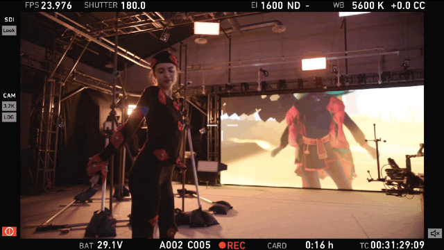 在場的工作人員通過跟隨舞者緩緩而行的手持?jǐn)z像機(jī)可以觀察到角色動作、燈光和環(huán)境紋理等現(xiàn)場各種設(shè)置,不需要為了等待渲染而浪費(fèi)時間。