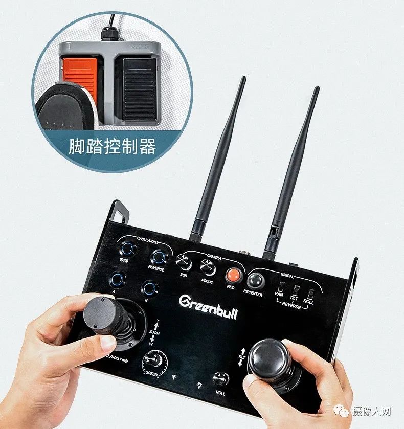 XT3的電控系統(tǒng)標(biāo)配有獨(dú)立的攝像機(jī)遙控接收機(jī),兼容配有迷你音頻 (Φ2.5mm)遙控插孔的攝像機(jī),如索尼Z90/Z280/FS5/FS7等攝像機(jī)或者松下攝像機(jī),可控制變焦、對(duì)焦、光圈、錄制等功能。