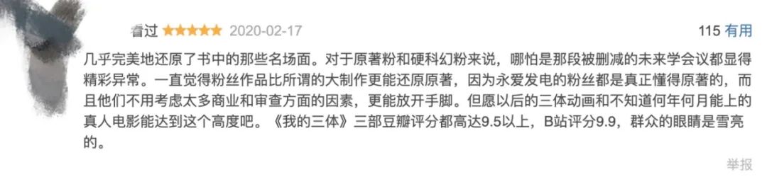 在《三體》電影不斷跳票、電視劇改編遙遙無期的情況下,甚至有評論認為,因為對原著的了解,「用愛發電」的飯制或許比官方的大制作更能還原大IP的故事與精髓。