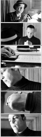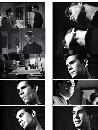 鹽田名彥講解的映畫術非常有趣,他看待電影的角度極其獨特,聽他講課好似一場漫游。比如,我們來看看他對“臉”是如何理解的。鹽田明彥的講課里有一個主題是“臉”,它和“看了臉,從而更加了解故事內容”完全不在一個層面上。鹽田明彥認為,“這是臉,這只能被稱為臉,它此時此刻就存在于此”的這種感覺。比如,他第一次觀看了希區柯克的《驚魂記》(Psycho,1960)時,原本就認為這是一部大家都認為非常出色的電影而已,觀看過后,他興奮地覺得這真是一部驚世神作?。〈撕?,無論他欣賞希區柯克的哪一部作品,都會陷入一門心思去想著“這位導演正在拍攝臉”的情形中。提到《驚魂記》中的“臉”,恐怕大家腦海中浮現出來的都是珍妮特·利(Janet Leigh)死亡時的那張臉吧。但對鹽田明彥來說,安東尼·珀金斯(Anthony Perkins) 的臉才是最偉大的。對于諾曼·貝茨(安東尼·珀金斯)這樣一個留名影史的獵奇犯罪者,希區柯克竟是通過“臉”來表現的。就是這樣的一個場面: