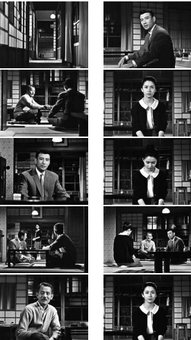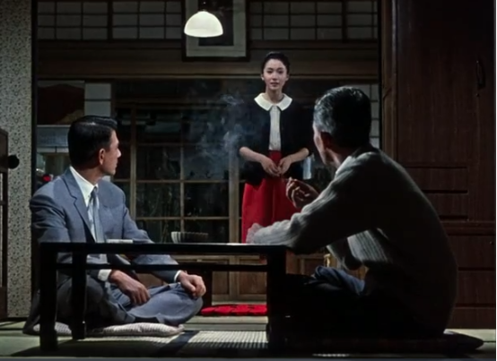 小津導演通過這種方式將聚集家人的起居室設計成了一種像法庭一樣的地方,此外,他更是賦予巖下志麻“被告人”一般的動線,讓她去接受來自男性們的宣判。“三浦君對你怎么想的,我讓你哥哥去問了他的意思,但是被拒絕了哦?!本瓦@樣,巖下志麻不能和心里偷偷愛慕著的男性結婚,轉而接受了男性們提出的代替方案,那就是和從沒見過的男性相親,然后離開了房間。小津在這里把一個家庭里極其日常的劇情,用可稱為法庭式的“視線戲”表達了出來。為了讓“場”立起來所進行的演員調度,是由視線來決定的。對視線的調度能夠令一個故事的結構成形。如上所講的就是一例精彩的視線演出。從小津導演的影片中我們學到了這樣一件事,那就是——如果在電影里出色地設定了一個“場”,那么在這個“場”中,演員最為重要的任務并非表現,而是存在。在那個場景里,巖下志麻也好,笠智眾也好,佐田啟二也好,他們都出色地存在著。并且,在巧妙設計出的“場”里,倘若演員們的存在達到了十分精彩的程度,那么需要被傳達出來的情緒就能自然而然地融入觀眾的內心。通過有意去掉表情,使得登場人物的感情清晰地展現在眼前。它就像是屬于自己的東西那般,生成于觀眾的內心深處。以上內容摘自鹽田明彥的新書《映畫術》。他認為,所謂電影,就是發現和組合動作,并創造出一個整體的事件;所謂鏡頭,則是對拍攝對象及其動作的一種發現。相信這本書可以打開你的觀影視角。