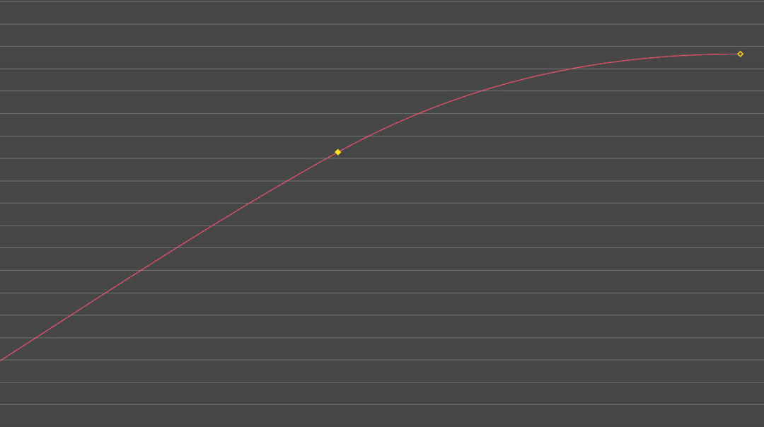 當(dāng)幅度太小時(shí),就像下面曲線編輯器中顯示那樣,曲線斜率變化迅速,后面幾乎是平的,動(dòng)畫(huà)驟停。