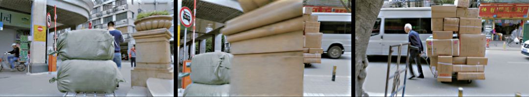 該影片中多次使用了遮擋物實現轉場效果。如圖1所示,在展示工人辛勤工作拉貨的鏡頭中,巧妙地使用柱體作為遮擋物,拉貨的人也由青年變成了一位白發蒼蒼的長者;而上一秒是街拍的場景,利用一輛經過的貨車作為轉場物,成功地將場景切換成了玩手機的路人,如圖2所示。雖說選擇遮擋物很重要,但真正的挑戰是使用遮擋物的同時保持動作流暢,這就需要在時間軸上下功夫,對元素進行適當的微調。