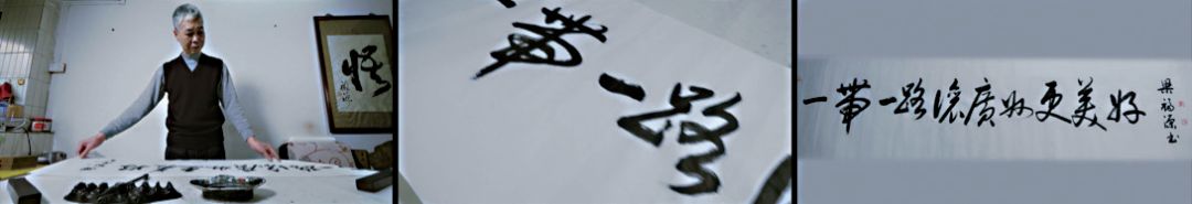 第二組主觀鏡頭是在紀錄片的結尾。老先生寫完字畫后,承接的是字畫的主要內容。看似是老先生的視覺,實質也是觀眾的視覺,意圖讓觀眾產生強烈的情感共鳴,有效地將觀眾的欲望縫合到電影中,使觀眾由衷地對“一帶一路讓城市更美好”的主題發出由衷贊嘆,如圖7所示。