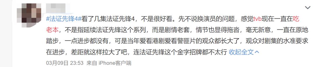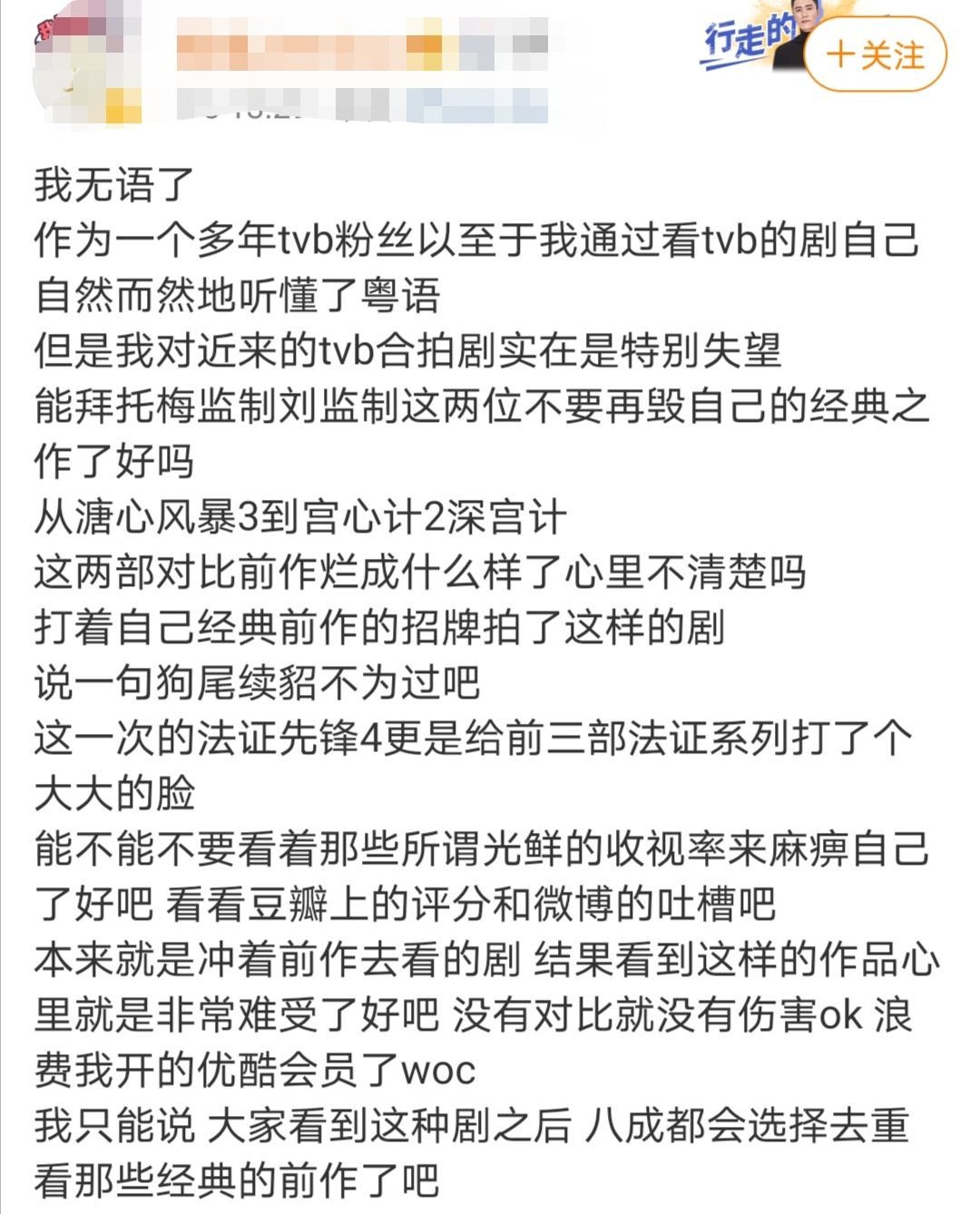 這讓不少喜愛港劇的觀眾非常失望,連港劇經典《法證先鋒》都不行了,港劇真的走到末路了嗎?近年來,港劇肉眼可見地在走下坡路,除了《溏心風暴3》、《使徒行者2》、《深宮計2》這幾部經典港劇的續集小范圍火起來了以外,其他的港劇在市場上甚至難有姓名。從以前“人人都看TVB” ,到如今港劇幾乎已經沒有出現過一部真正意義上火遍兩岸三地的大爆作品,整體的口碑也呈下降趨勢。港劇整體的發展呈現這樣一個現象:除了經典港劇作品續集的名頭帶來的粉絲以外,大部分作品在自身內容上鮮少看到成為爆款的潛力。演員方面,TVB的低薪酬和內地片酬的誘惑,使得大量實力演員離巢北上,自2013年無線藝員訓練班停辦后,TVB演員進入青黃不接的狀態,演員的重復性極高,甚至出現一個演員從到演到晚的情況。面對此情況,TVB的做法是強行尬捧新晉港姐,長得一般,演技尷尬,卻經常擔任重要角色,一時間備受吐槽。按理來說,老演員退任新演員補上是影視圈正常的演員更迭生態鏈,但由于儲備新人演員的不足,以及TVB高層內部派系斗爭各方力捧自家新人,致使港劇圈演員失去了正常的新陳代謝,老牌演員離巢后TVB發展非常艱難。