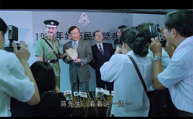 電影《搶錢夫妻》中,蔣有為參加“1993年好市民頒獎典禮”