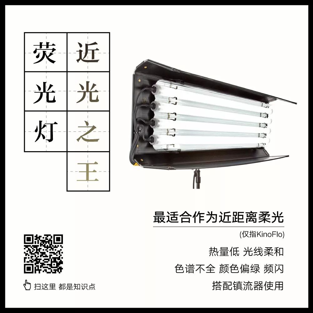 KinoFlo的燈管是塑料材質,運作的時候基本不會發熱,可以用手直接觸摸,非常安全方便,是近距離柔光的最佳選擇,被稱為“近光之王”。