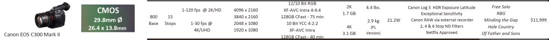 只有這么多的(圖表)空間,攝影機來來去去,最值得注意的是,佳能C300 MK2在圖表上的時間比其他任何攝影機都要長,不過Tom和我預測它將被明年初上市的C500 MK2所取代。