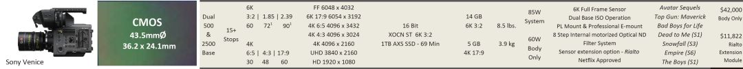 這也是為什么像ARRI Alexa 65以及Panavision DXL這樣的攝影機沒有包括在其中,即使它們都廣泛運用于影視制作中。