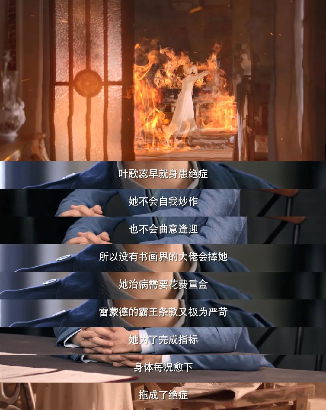 在“火吻”一案中,年輕畫家葉歌蕊在自己的畫室“自焚”的背后,是身患絕癥、但并不曲意逢迎的年輕藝術家用死亡控訴著資本家的剝削。