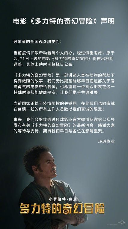 對于《多力特的奇幻冒險》來講,一方面是本土市場的糟糕表現,另一方面海外市場也壞消息不斷。在上周,環球電影官方宣布受疫情的持續影響,本片將退出中國市場,此前業界預計中國市場的開畫將有望降低影片的虧損程度,但是疫情的蔓延卻給了影片當頭一棒,失去了全球第二大票倉意味著影片的凈虧損額將在此前業界預估的1億美元基礎上繼續增加、而對于小羅伯特·唐尼來講,此次在非漫威電影中的試水以及外界所給予本片的評價和反應,或許也從反面印證了漫威演員轉型之路的艱難。
