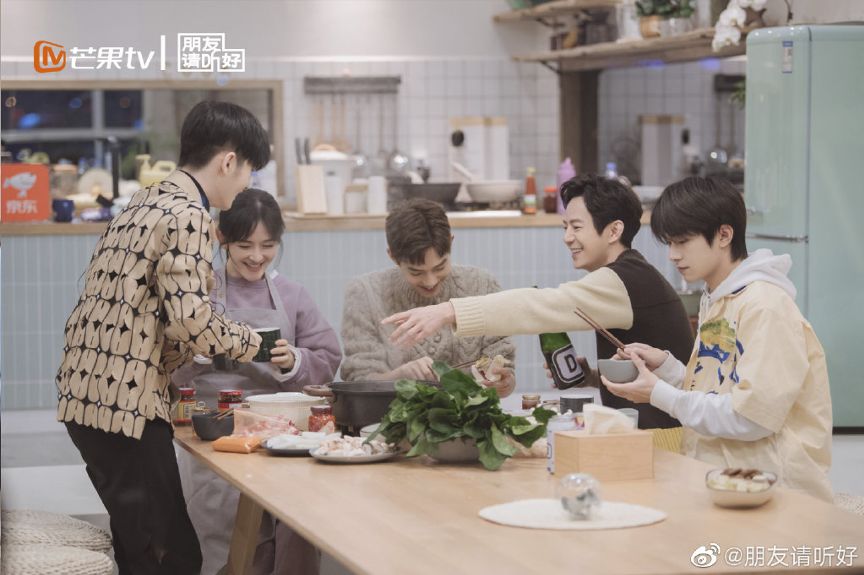 另一方面,何炅、謝娜、易烊千璽極具煙火味的相處勾勒出年輕生活新樣本,讓觀眾感受到了人情溫暖。節目廣為傳播的一個片段,是何炅看到默默坐在墊子旁邊的易烊千璽,暖心解釋“他覺得這好像是個中間的位置,他不好意思”,謝娜拿起他的衣帶打趣道,“他還沒有喝牛奶的時候,衣帶就先在奶里泡了一下”,兩位前輩如同哥哥姐姐一般照顧著弟弟,輕松逗趣的生活日常令人卸下疲憊。飛行嘉賓周震南、王鏘到來之后,從一顆剪彩花球開始,小屋里的歡聲笑語就沒有停下來。