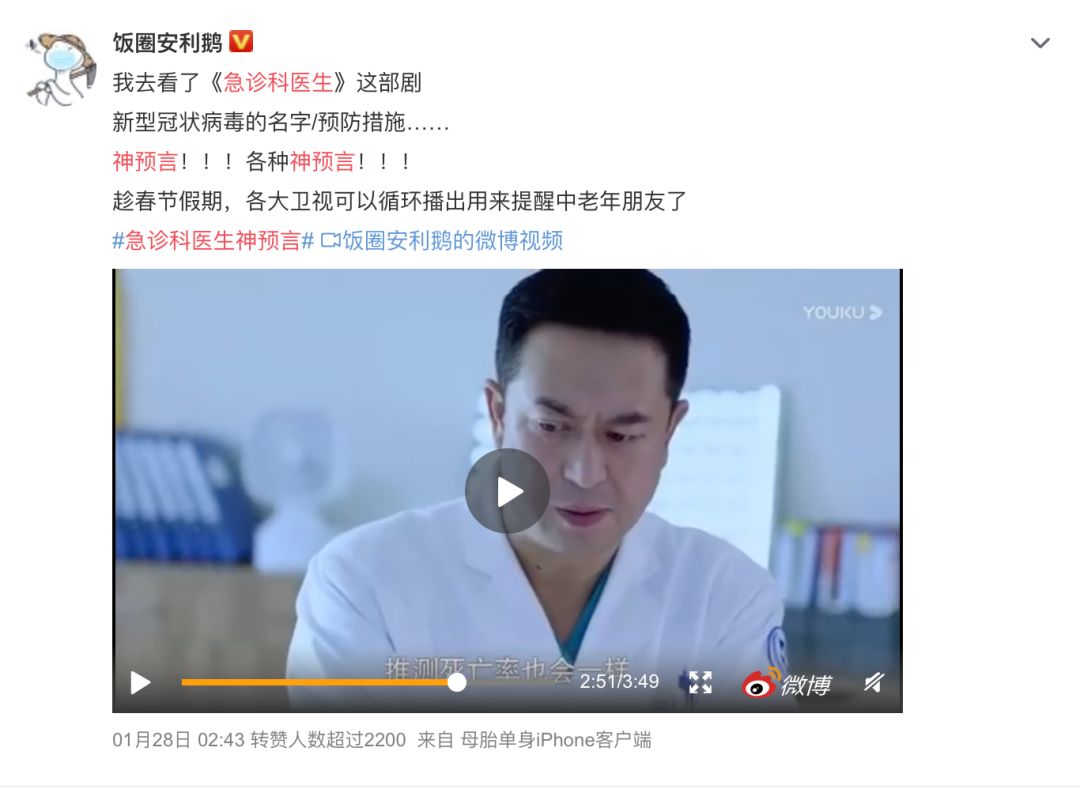 最近,國產醫療劇再次得到了人們的關注,甚至《急診科醫生》全網翻紅:在微博上相關話題閱讀量高達11.2億,抖音上片段播放量達到15.3億,B站網友自制視頻最高播放量達62.5萬,但似乎其口碑并沒有搭上高熱度的快車,最受人們關注的依然是劇中對“新型冠狀病毒”的“神預言”。這樣的“翻紅”,對國產醫療劇來說,并不是什么褒獎,甚至從某種程度上來說是一種悲哀。