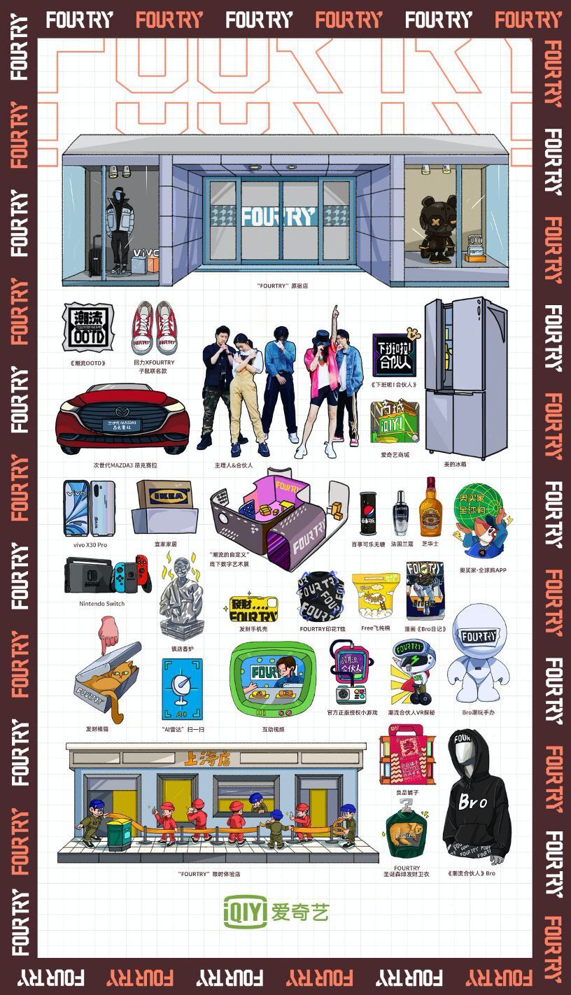 隨著《潮流合伙人》IP產(chǎn)業(yè)鏈開發(fā)的推進,節(jié)目IP價值正不斷得到釋放。眼下節(jié)目第二季已經(jīng)提上日程,期待著再見面的時候,F(xiàn)OURTRY又會帶來一波全新的潮流體驗。