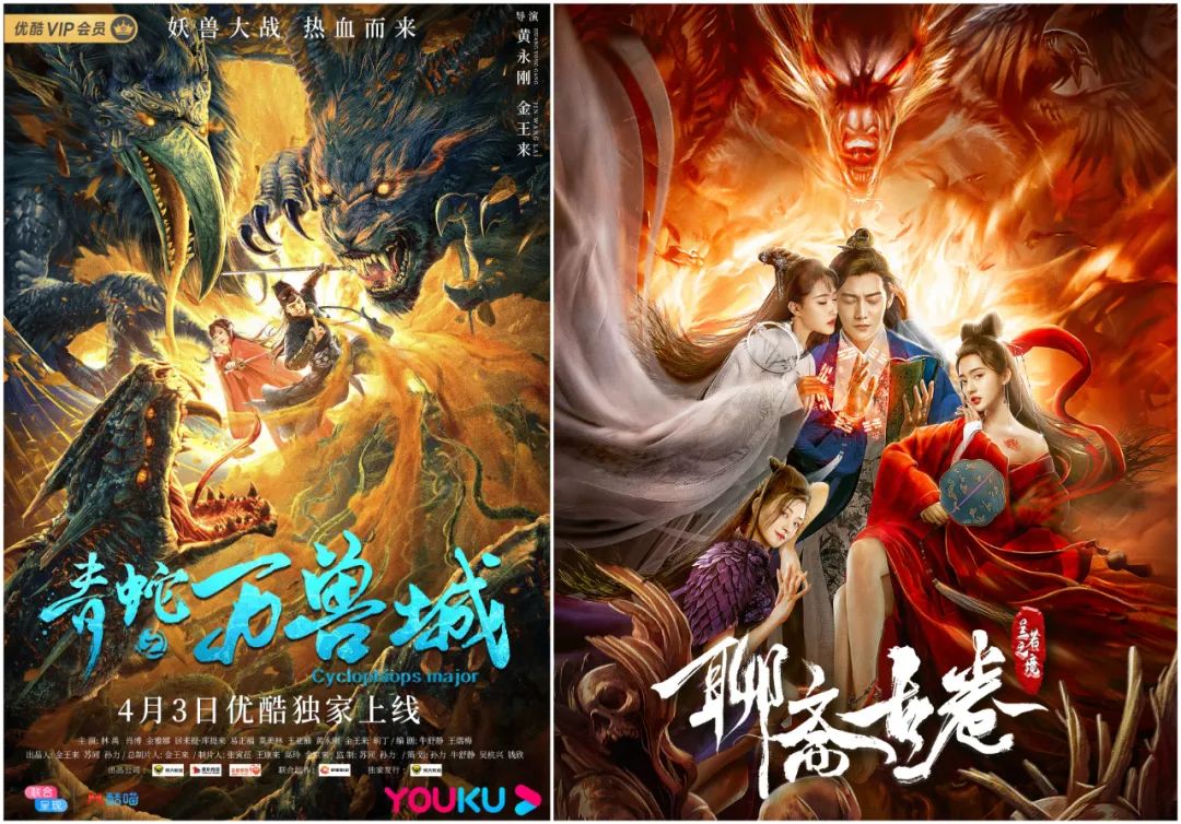 以烹小鮮4月網絡電影中國故事【鮮】鋒榜上榜影片為例,古裝、奇幻、冒險、怪獸等大熱題材多達7部,其中“鬼吹燈IP”、“青蛇IP”、“聊齋IP”均是反復翻拍的“老IP”。由于題材的嚴重同質化,制作團隊的良莠不齊,演員陣容不同以及制作水平相差懸殊,這些經典翻拍難有超越前作的水準,甚至給IP本身帶來傷害。
