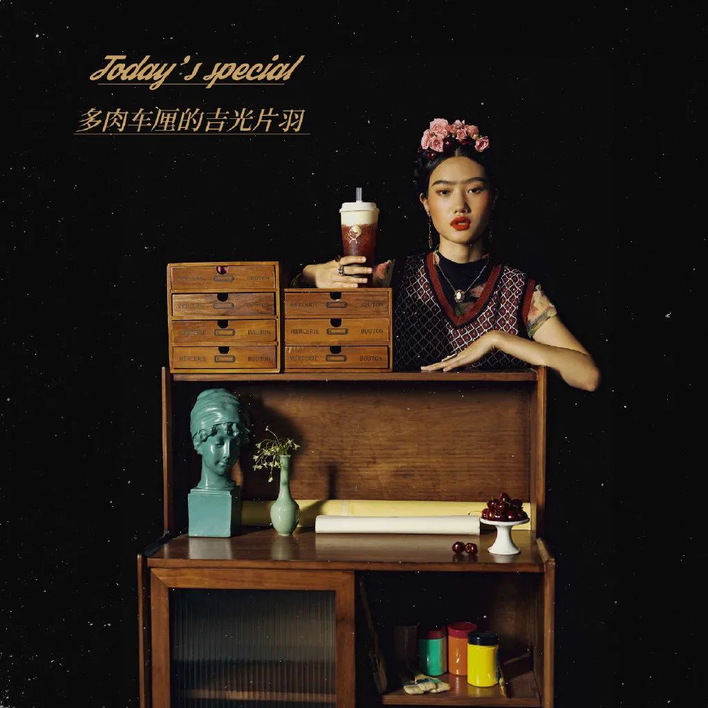 設計要點:民國復古和上面的國風的風格有一些接近,民國復古更多是根據民國時期上海的風貌來的,標準的圓形招牌造型、窗花圖樣、旗袍,搭配素雅的配色民國風格很快就搭建出來了!