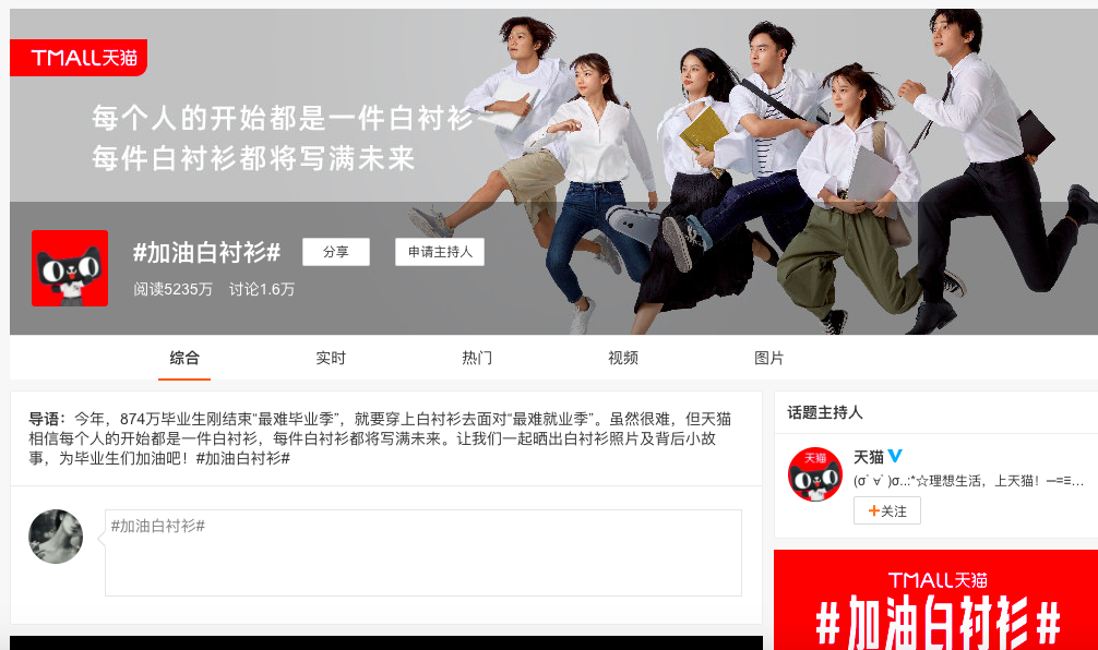 當然,這不只是在講一件白襯衫,講述這屆畢業生的故事,同時,也為我們講述了天貓的小心思。