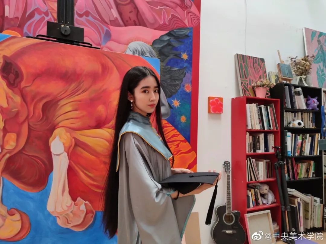 除了作品展覽受到好評外,今年由中央美院自主設計的中央美院“學士服”才讓人羨慕,也因此而“美”上微博熱搜,成為最新熱門話題。
