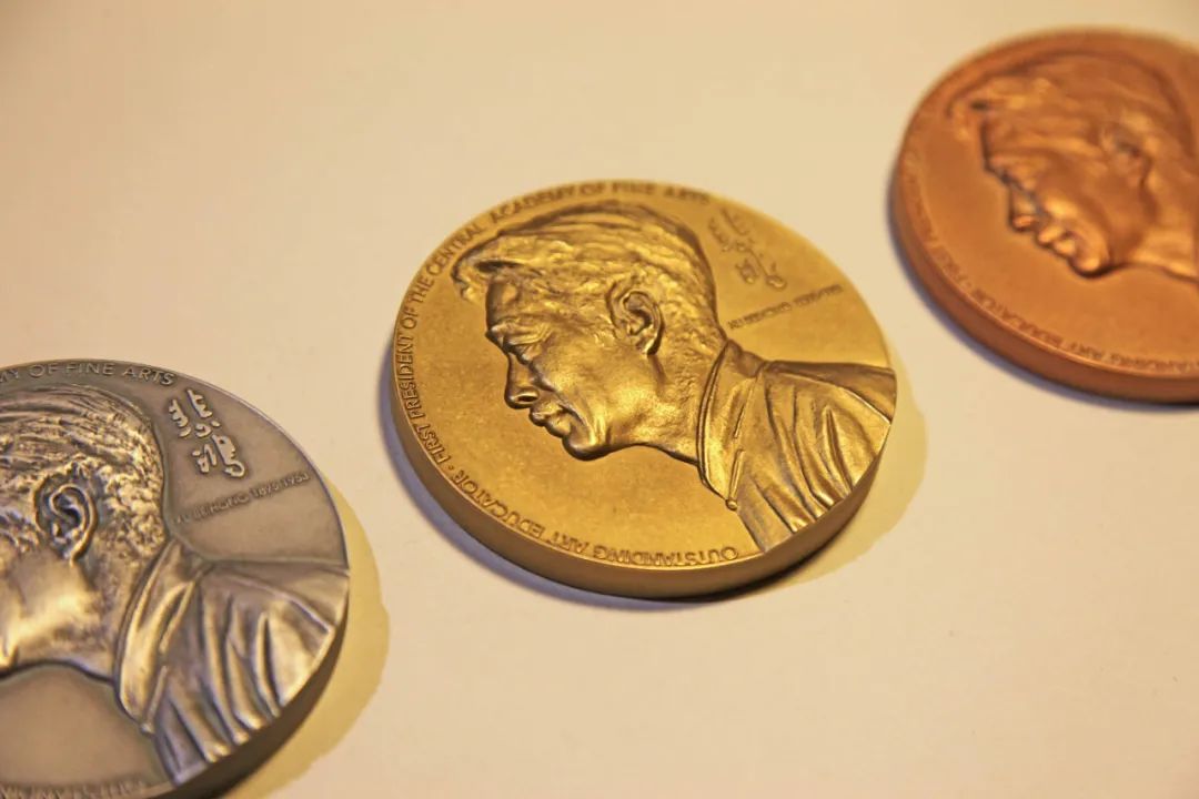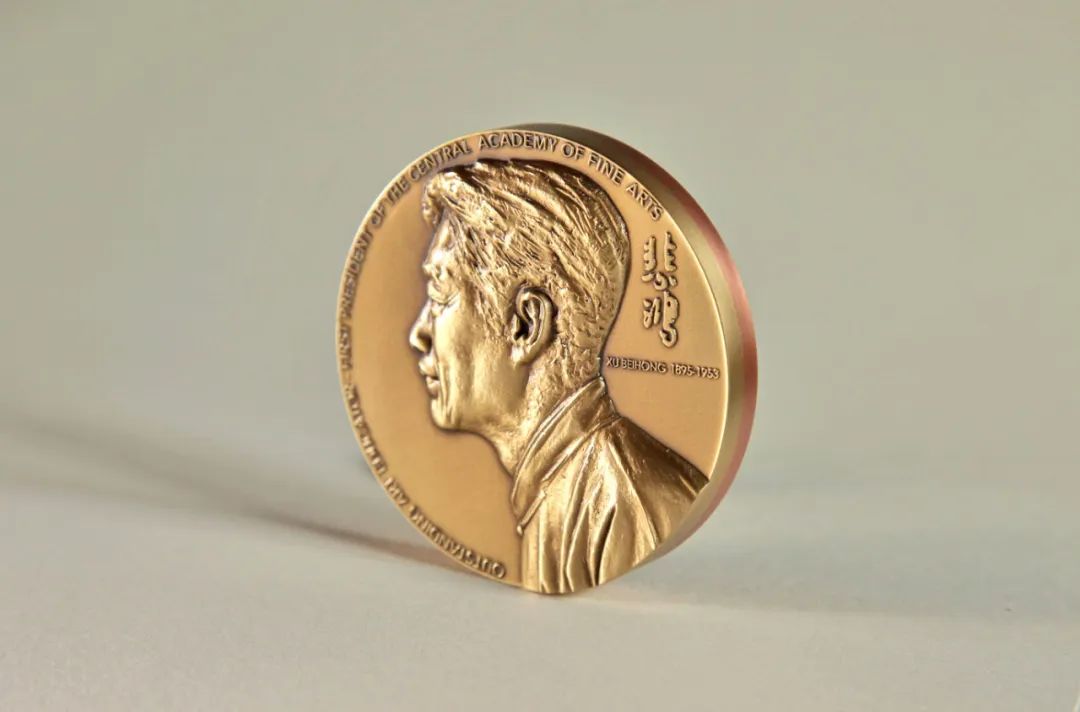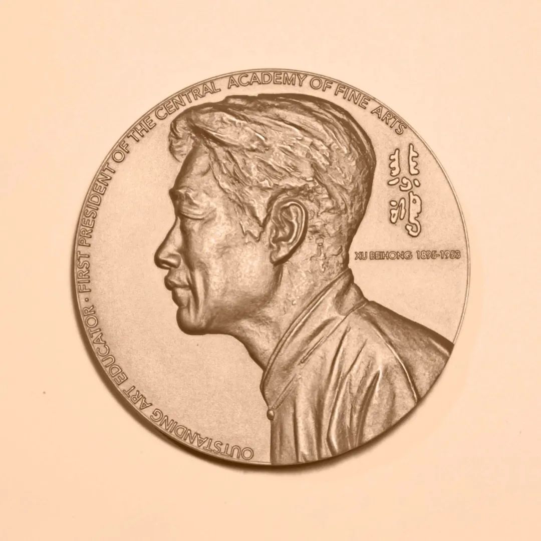 紀念章正面是中央美院首任院長,徐悲鴻先生的側面浮雕像。