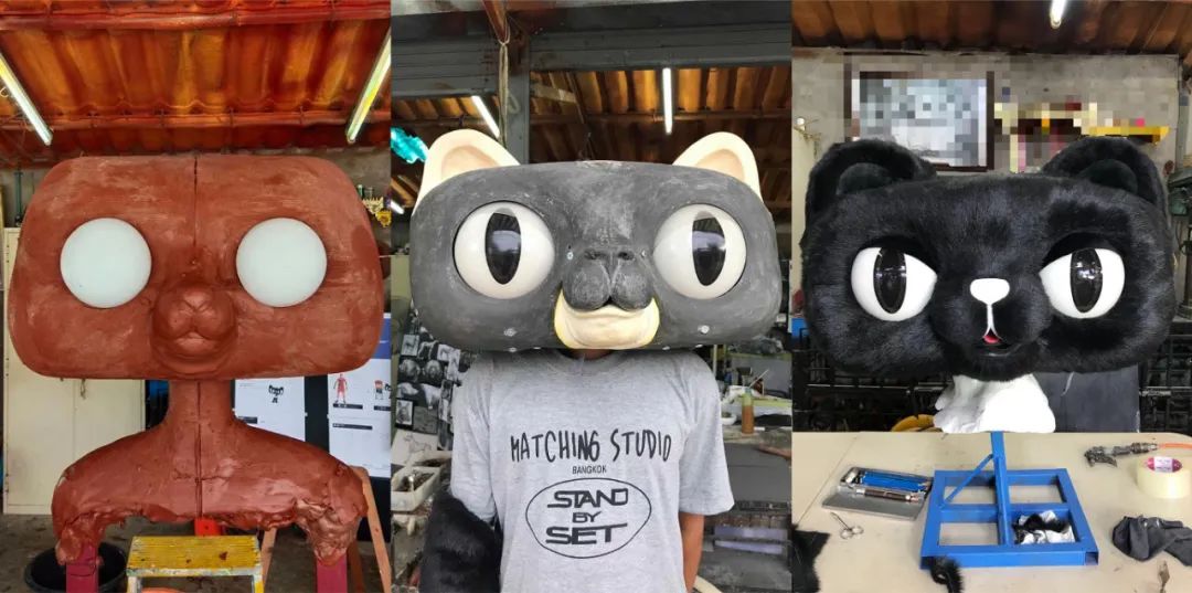 為了讓貓機長更有戲,我們再次找到了泰國道具一哥dimsum老師(就是狼人系列,以及微博上的沙雕光頭頭盔制作者),將貓機長的眼皮、嘴巴、耳朵設置成可活動,用細節部位來幫助展現情緒和機長痞帥的個性。