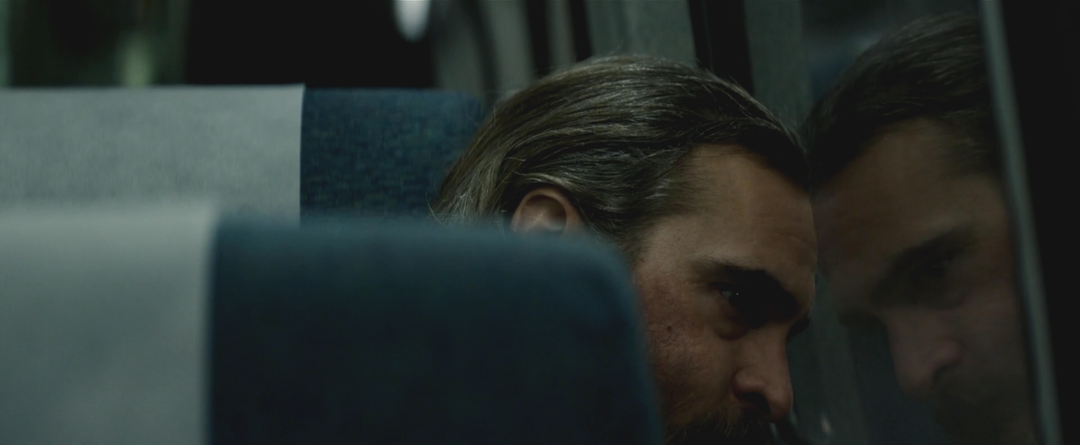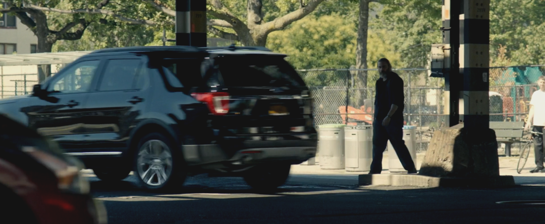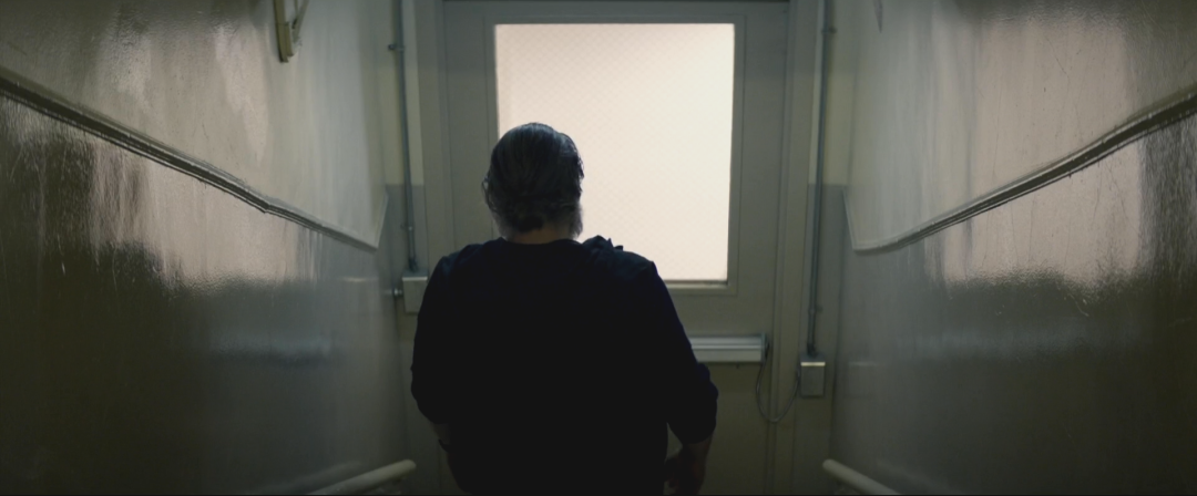 比較明顯的幾處有:接受完任務(wù)的喬正走下樓梯,這時(shí)樓梯間里的聲音如真空般沉悶。隨后,當(dāng)他完全走下樓梯,猛地踹開(kāi)門(mén),嘈雜的城市聲音瞬間涌入聲道,形成強(qiáng)烈的動(dòng)靜對(duì)比。值得注意的是,在喬上樓準(zhǔn)備接受任務(wù)時(shí),這個(gè)樓梯間里原本是能夠聽(tīng)到外界聲音的。在這里,創(chuàng)作者則有意地將外界聲音抽離,是因?yàn)樵谇耙粓?chǎng)戲中,喬正沉在自己的思緒里,因此這里沉悶的聲音能夠讓觀眾進(jìn)入喬的“真空”情緒之中。在城市聲音涌進(jìn)來(lái)的一剎那,觀眾同喬一起從他的思緒中回到現(xiàn)實(shí)。