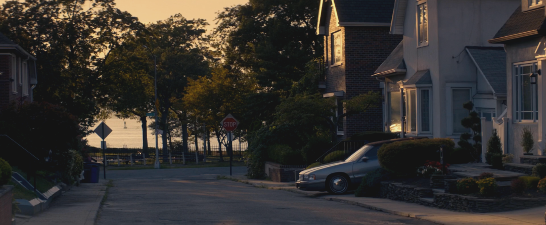比如,在任務(wù)突遭變故后,喬前來(lái)雇主家探明情況。這時(shí)畫(huà)面里是寧?kù)o的住宅區(qū)街道,伴著美麗的朝霞與自然景色,可同時(shí)卻有一陣躁動(dòng)不安的聲音占據(jù)著聲軌,我們找不到它的聲源。進(jìn)入下一場(chǎng),我們才得知這個(gè)聲音是出自水燒干了的咖啡機(jī),喬正從它旁邊經(jīng)過(guò),明顯是喬的主觀聽(tīng)感。這里,創(chuàng)作者將無(wú)人照料的咖啡機(jī)發(fā)出的聲響前置到上一場(chǎng),在吸引觀眾主動(dòng)尋找聲源的同時(shí),提前營(yíng)造出緊張的氛圍,預(yù)示著接下來(lái)的噩耗。