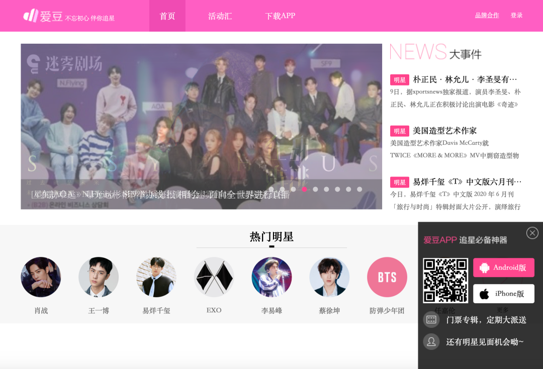 隨著WEB2.0概念的提出,互聯(lián)網(wǎng)開始從單向的信息傳播發(fā)展為交互性信息傳播,以興趣為聚合點的社群逐漸建立。2009年,微博進入試運營,該平臺創(chuàng)立之初就將娛樂作為產(chǎn)品的重要功能之一,明星成為其首批邀請對象。如今,隨著微博與明星營銷的深度融合,包括專注于粉絲互動、打榜等功能的“超話社區(qū)”的上線、“微博之夜”活動的開展等,讓明星粉絲從線上至線下都擁有了更加豐富的星粉互動形式。另外,平臺也在積極尋求生產(chǎn)專業(yè)化的內容為星粉互動帶來更多的可能性,比如2018年5月推出的“明星制片人V計劃”,得到了幾十余位明星的參與和大批粉絲的關注。而豆瓣雖然起初以書影音起家,但隨著其作品打分功能激發(fā)多家明星粉絲的進駐,以及“八卦來了”小組在明星爆料方面的“聲望”,目前該平臺也成為人們獲取明星信息的主要渠道之一。