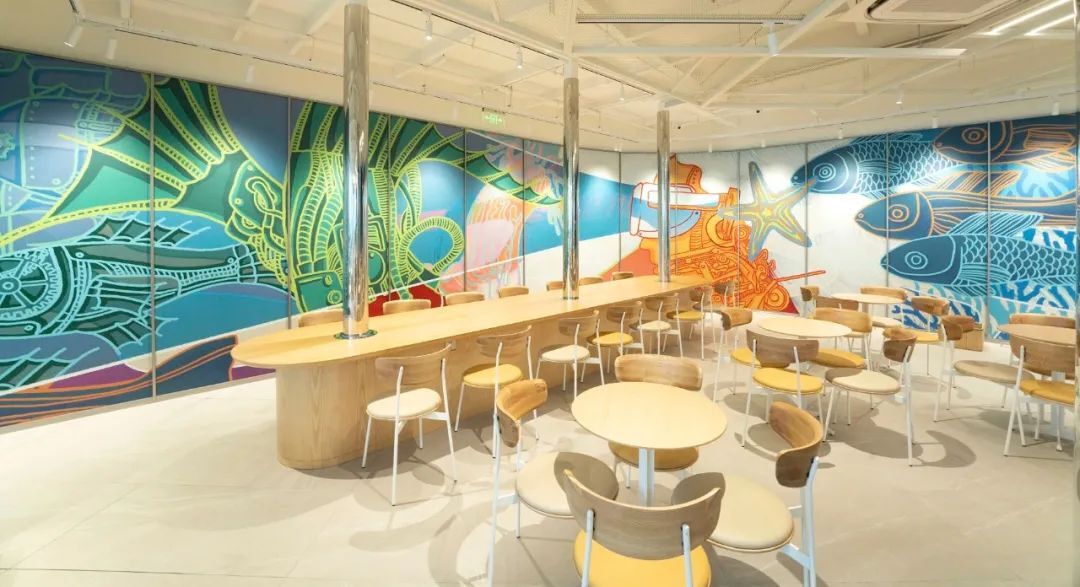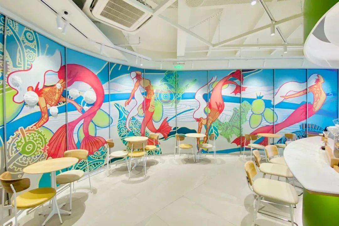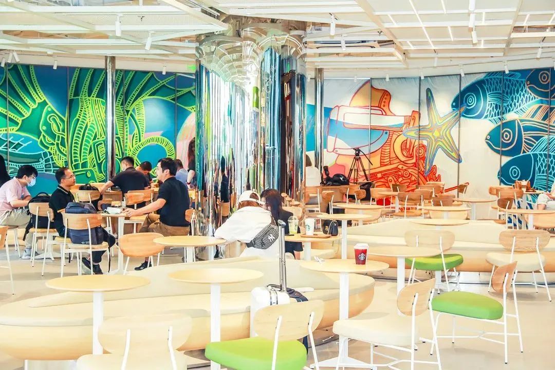 升級后的設(shè)計非常驚艷,門頭采用巨大綠色美人魚標(biāo)志,兩邊是美人魚尾巴圖案。