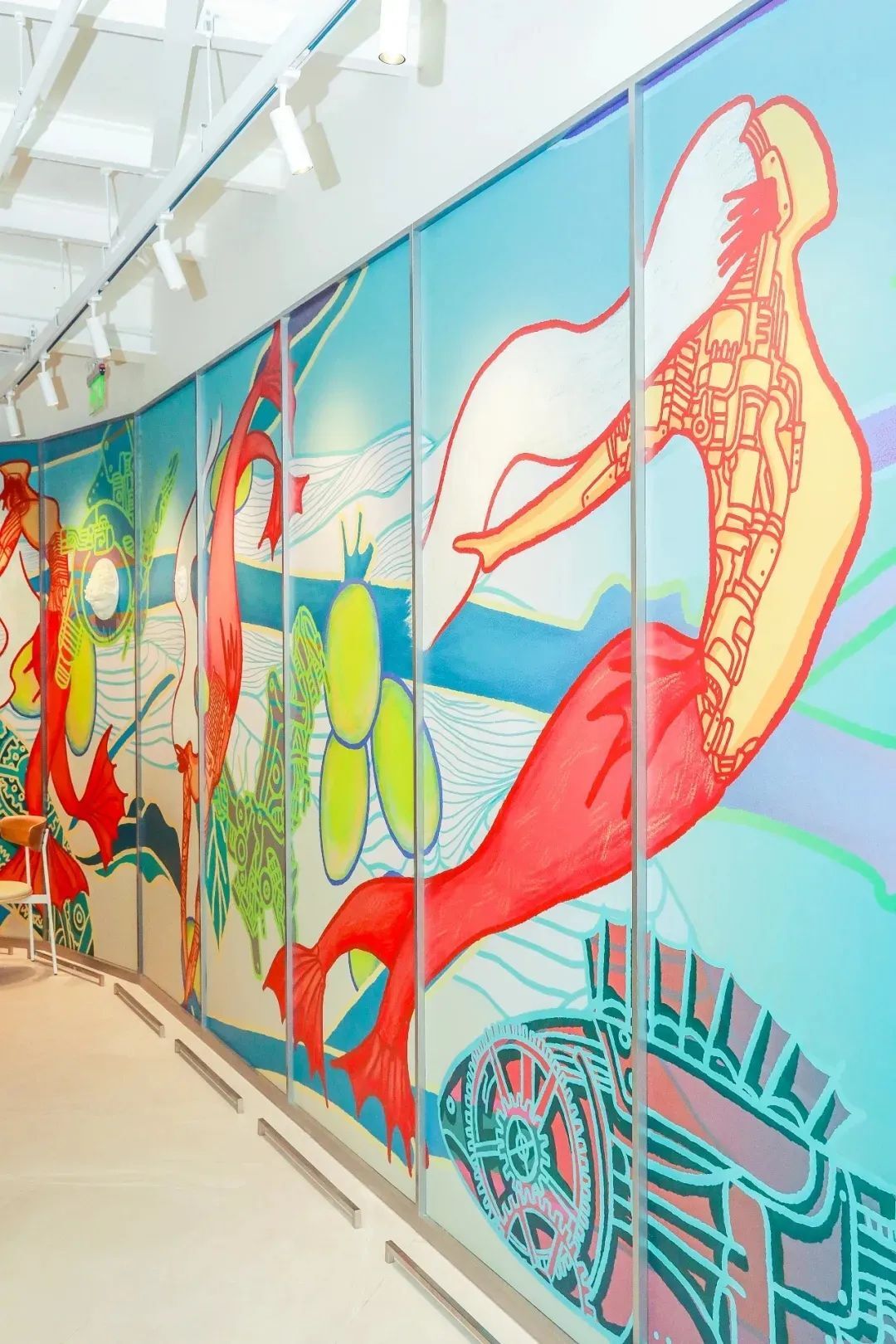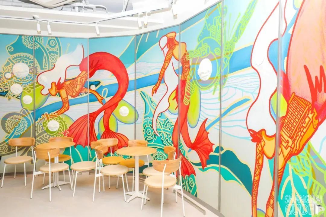 墻壁上這些插畫設(shè)計也是一道亮麗的風(fēng)景線:
