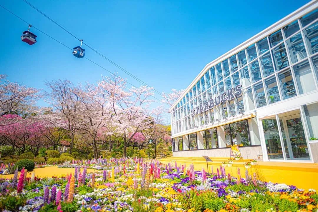 星巴克開第一家溫室花房店在日本富山環(huán)水公園里面的花四季盛開,不凋零被稱為“全世界最美的星巴克”。