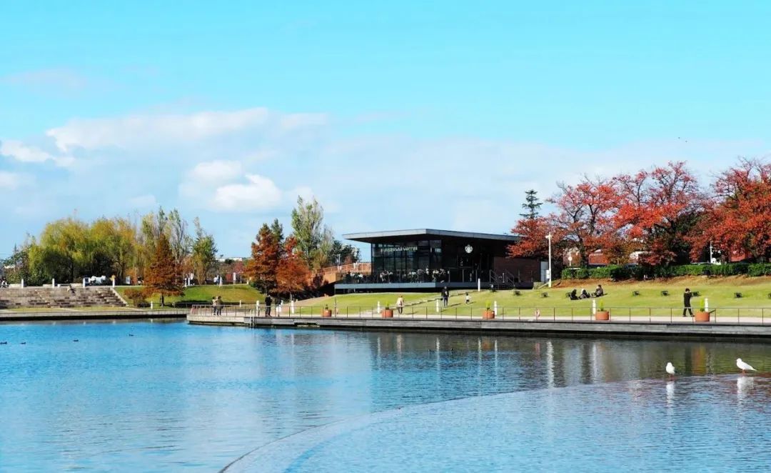 星巴克被楓葉樹岸環(huán)繞,還有一條河畔。