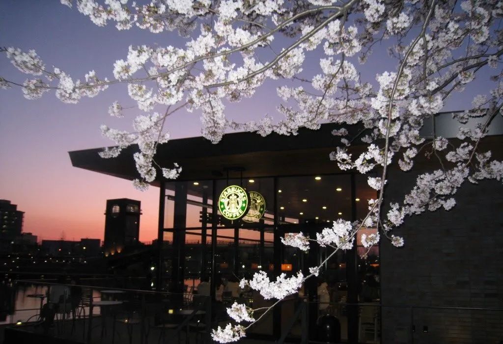 白天在這里喝咖啡,賞櫻花晚上在這里喝咖啡,看煙花: