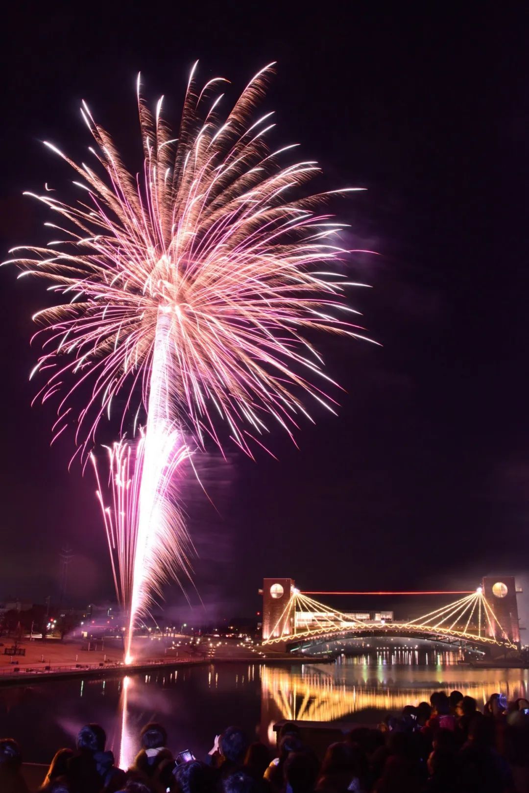 河面星光點綴遠處的天門橋燈光亮起,象征愛情橋情侶約會的必選之地,浪漫極了。