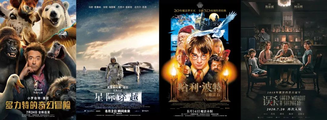 復映影片則有三部作品票房過億,分別為超級IP《哈利·波特與魔法石》、由克里斯托弗·諾蘭執導的經典科幻片《星際穿越》和國產片《誤殺》,三者票房報收依次為1.34億、1.17億和1.18億。