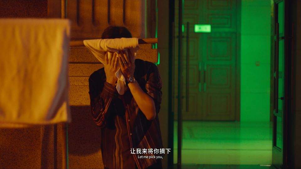 我被那一刻深深震撼了,我想每個人,不論有多么不堪和落魄,他都有想要變得干凈,找回自己尊嚴的時刻。我很感謝李霄峰把這個場景放到了電影里,在王棟走進劇院的最后一刻,毛巾給了他一個緩沖。當時的王棟已經準備好接受自己最后的結局,去直面萱慧對自己的真實情感。在這個山窮水盡的時刻,他用這個動作來為自己找回最后一點在愛人前的體面。