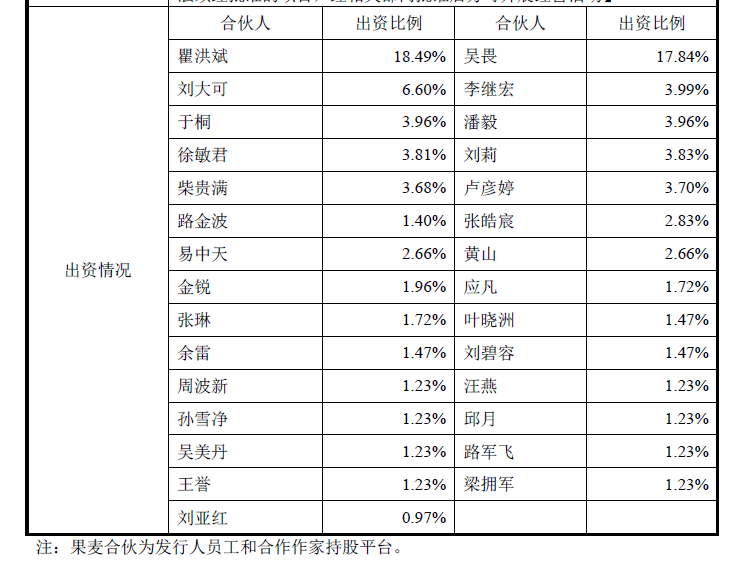 果麥文化招股書顯示,果麥文化主營業務包括圖書策劃與發行、數字內容業務、IP衍生與運營,2017年、2018年和2019年果麥文化分別實現營業收入2.43億元、3.05億元和3.84億元,實現凈利潤2931.82萬元、5286.68萬元和5921.58萬元。從招股書來看,果麥文化圖書策劃與發行收入占據了主營業務收入90%以上的比重,構成了公司主營業務收入的最主要收入來源,為公司主營核心業務。其中,圖書策劃與發行業務按版權屬性的不同,可劃分為公版圖書、版權圖書兩大類。在公版圖書領域,截至2019年底,“果麥經典”推出的《小王子》、《浮生六記》、《人性的弱點》等圖書產品的銷量超百萬冊。在版權圖書領域,果麥文化的圖書版權收益,主要建立在具有標識性、大IP作者的基礎上,韓寒、易中天、“80后天才譯者”的翻譯家李繼宏,三人是果麥文化盈利能力最為穩定三名作家。招股書顯示,三年間,果麥文化分別向韓寒、易中天和李繼宏支付了2236.87萬元、1796.19萬元和846.83萬元的版稅。此外在不同的內容領域,擁有頭部作者及作品,在散雜文領域,公司與戴建業、蔡崇達、馮唐、張皓宸等為代表的作家、學者保持緊密合作,近年來策劃發行了韓寒《我所理解的生活》、戴建業《你聽懂了沒有》、蔡崇達《皮囊》、馮唐《活著活著就老了》《三十六大》、汪曾祺《生活,是很好玩的》等暢銷產品;在少兒版權圖書領域與楊紅櫻、熊亮、凱叔、陳引馳等作者形成主要的合作關系;社科類圖書則主要以易中天為主。截至2019年底,易中天《中華史》系列、蔡崇達《皮囊》、張皓宸《我與世界只差一個你》、韓寒《我所理解的生活》等圖書產品的銷量超百萬冊。不過圖書策劃與發行行業內,一九現象非常明顯,也就是說90%的圖書沒有多大的利潤,甚至有可能虧損,不少公司的收益大概率的靠10%的爆款獲取。從這個點出發,果麥文化能夠抓住頭部作家及其作品進行運作,這在一定程度上,也保證一個公司的大部分收入來源。在上市這場資本盛宴中,作家與果麥文化仍相互“依偎”。如招股書顯示,2012年4月27日,路金波和周巧蓉共同出資設立果麥有限,注冊資本為300萬元,其中路金波以貨幣出資270萬元,周巧蓉以貨幣出資30萬元。周巧蓉系韓寒的母親。員工持股平臺中,則能夠看到果麥文化簽約的主要作家的身影,其中包括了易中天、張皓宸、周繼宏等為果麥文化貢獻了大量版權圖書銷量的暢銷書作家。由此可見,果麥與作家的聯系將通過資本進一步加強,為后續的IP開發業務打下基礎。此前,路金波曾在公開場合表示:“果麥永遠從書出發,永遠都是一個出版公司,出版是我們來時的路”。不過從2014年開始,果麥就已經開始對下游的布局。2014 年,韓寒導演的電影《后會無期》正式上映。作為韓寒的老朋友,路金波和他的果麥文化也作為出品方參與其中。根據公布的分賬協議,扣除制片和宣發成本后,導演韓寒、制片人方勵以及路金波可以分到 1.05 億元左右的票房收入。此后,果麥參與投資的電影有《萬萬沒想到》(韓寒與叫獸易小星關系頗為緊密)、《萬物生長》(改編自馮唐的同名小說)、以及《乘風破浪》(同樣是韓寒導演的電影)。因此,值得關注的是,果麥文化此次公布的融資消息中出現了博納影業的名字。股東榜上,博納影業也以10%的持股,位列第四大股東。2017年2月,公司多位股東簽署相關轉讓協議,博納影業以1.15億元,獲得了10%的公司股權,彼時果麥文化尚未股改。博納影業,這是韓寒的長期合作者,《后會無期》和《乘風破浪》都有博納影業的參與。看得出來,果麥是想加大對于影視的投資,公司在確保主業穩健增長的前提下,積極布局新媒體和影視業務,形成用戶、流量和 IP 變現的閉環。從文學出版到電影出品,路金波嘗試打通產業鏈上下游的道路。比如對“90后”網紅作家張皓宸的運營塑造,就展現了一個從文學到影視產業鏈建立的作用。張皓宸最早在韓寒文藝生活App“ONE一個”上走紅,后通過果麥文化出版短篇故事集,逐步確立了網紅作家的地位,作品最后又通過韓寒旗下的亭東影業打造同名電影作品。至此,一個完整的IP產業鏈實現了閉環。有趣的是,博納影業在投資果麥文化之時,同時向韓寒的亭東影業投資了2.5億元,投后持有亭東影業12.5%的股權。可見,博納影業對路金波和韓寒這對“黃金搭檔”滿懷憧憬。不過從招股書來看,目前公司IP衍生與運營業務規模較小,報告期主要基于擁有的版權資源和內容策劃能力開展了影視劇改編授權、麥基研討會以及策劃服務等業務,涉及的版權作品主要包括《回答不了》《白色城堡》《故事》等。公司正在開發《浮生六記》聲音劇、《皮囊》話劇等項目,其占主營業務收入的比重分別為0.89%、1.71%和0.84%。單一的圖書策劃與發行,在網絡文學大行其道、IP開發趨于成熟的大背景下還能夠突出重圍嗎?果麥文化圍繞IP的衍生探索要如何做呢?對此我們打上一個問號。隨著互聯網發展,傳統的出版行業同樣面臨著挑戰,一方面線上閱讀已成趨勢,另一方面,暢銷書頭部效應顯著,大部分圖書并不能帶來顯著的收益。