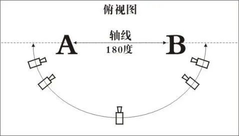場面調度在視覺上的挑戰基本就是空間問題——在二維空間的銀幕上體現三維空間的效果。首先我們要了解雙人對話時的基本站位,熟悉攝影機的機位,然后你可以在此基礎上打破規則,進行創新。同時,拍攝雙人對話時要注意遵循軸線規律。軸線是指被攝物體的朝向、運動的方向和物體之間的交流關系所形成的一條假想的虛擬直線,是建立畫面空間,表現主體位置關系的基本要素。軸線原則又稱“180°原則”,在拍攝時需要在軸線的一側區域內設置機位或安排運動,這其實是為了保證被攝物體在影視畫面空間相對穩定的位置和統一的運動方向。